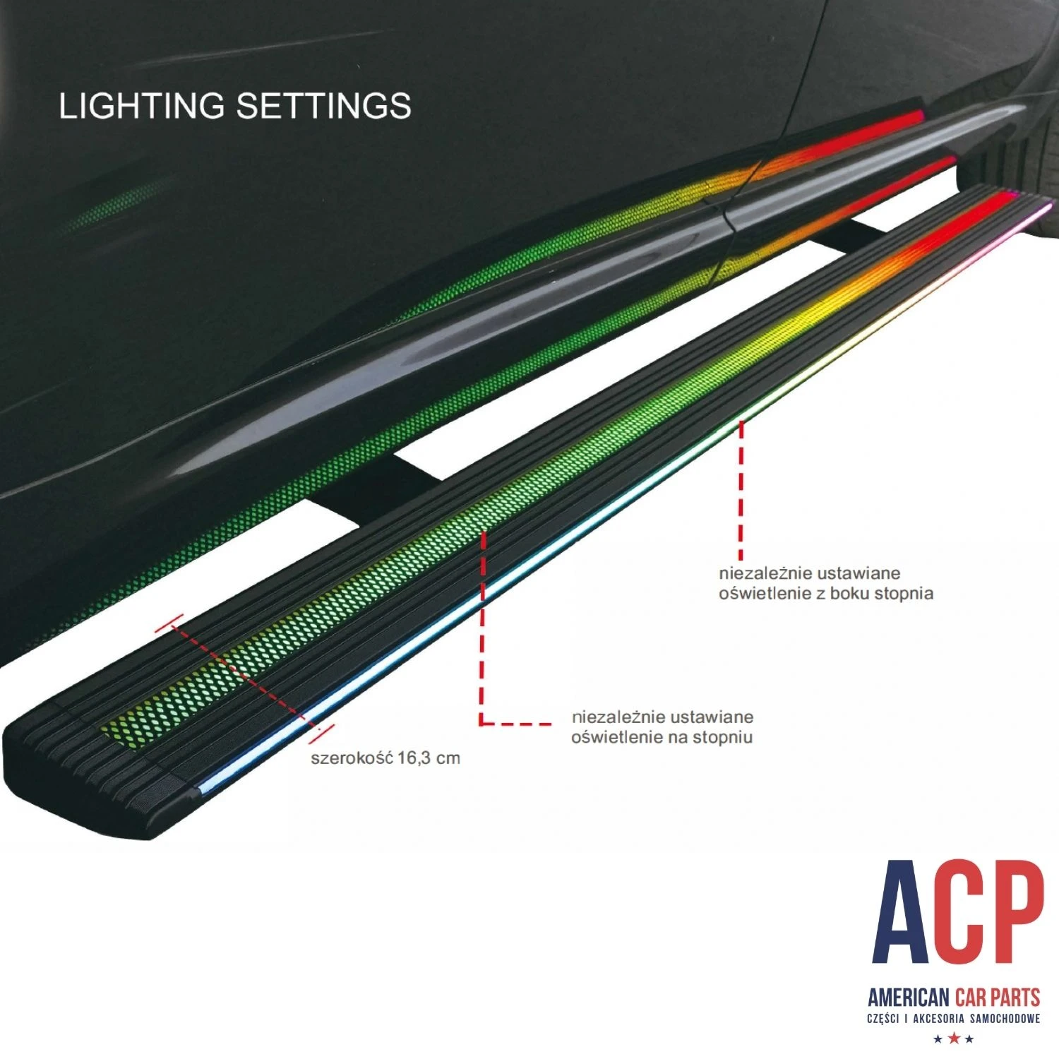 - Stopnie boczne podświetlone dwoma listwami LED